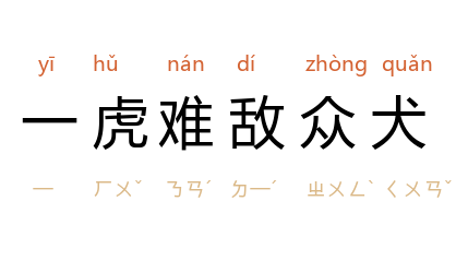 一只老虎打不过一群狗。比喻一个人的本事虽高,但打不过对方人多。