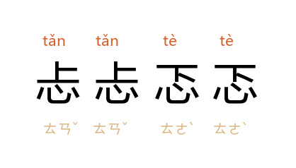 注音ㄊㄢˇ ㄊㄢˇ ㄊㄜˋ ㄊㄜˋ