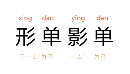 出处明·高濂《玉簪记·追别》:“我怎敢忘却些儿灯边枕边,只愁你形单影单,只愁你衾寒枕寒,哭得我哽咽喉干。”