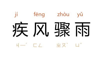 疾:又快又猛;骤:突然而猛烈。形容风雨来势猛。比喻迅猛激烈的斗争。