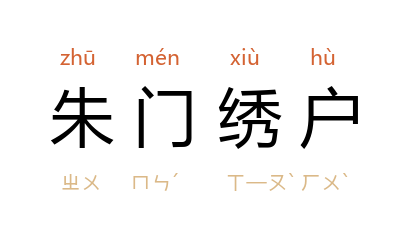 朱门:红漆大门;绣户:雕绘华美的门户。比喻富贵人家妇女的住处。也借指富贵人家。
