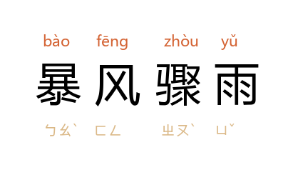 暴:突然而猛烈的;骤:急速。来势急速而猛烈的大风大雨。有时比喻声势浩大;发展迅速的运动。