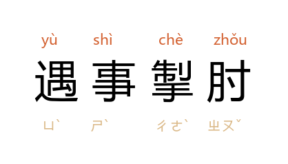 掣肘:拉胳膊肘,指受牵制。一遇到事情就加以牵制。
