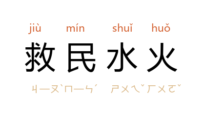 救:拯救;水火:水深火热。从水深火热中拯救老百姓。