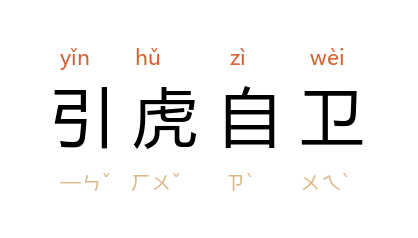 引:招引。引来老虎,保卫自己。比喻企图依仗恶人,结果反受其害。