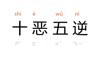 例子清·龚自珍《发大心文》:“乃至见他十恶五逆,亦将我心置他胸魁祸首。”