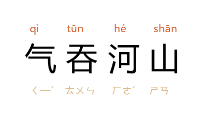 吞:吞掉。气势可以吞没高山和大河。形容气势、气魄很大。