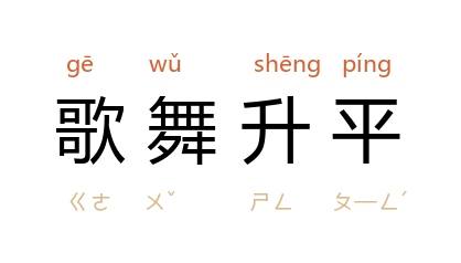 边歌边舞;庆祝太平;有粉饰太平的意思。含贬义。升平:太平。
