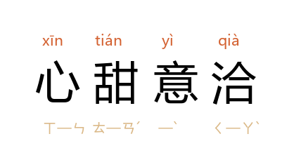 出处清·曹雪芹《红楼梦》第八回:“宝玉正在这个心甜意洽之时,又兼姐妹们说说笑笑,哪里不肯吃?”