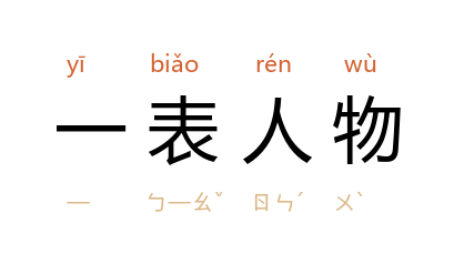 出处元·郑光祖《倩女离魂》第一折:“(梅香云)姐姐,那王秀才生的一表人物,聪明浪子,论姐姐这个模样,正和王秀才是一对儿。”元·关汉卿《望江亭》第一折:“夫人,放着你这一表人物,怕没有中意的丈夫?”