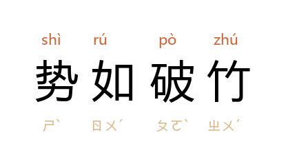 成语“势如破竹”,形容战斗节节胜利,毫无阻挡。