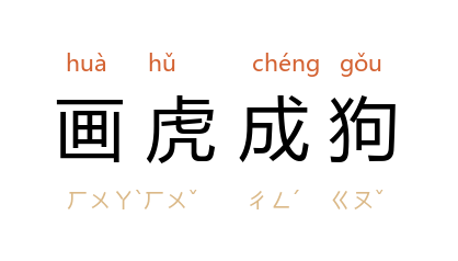 画老虎不成,却成了狗。比喻模仿不到家,反而不伦不类。