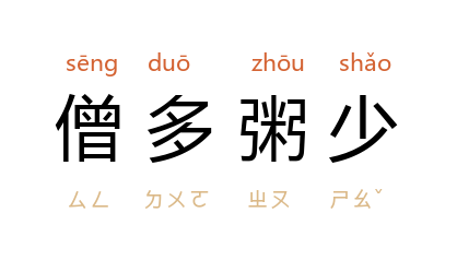 拼音sēng duō zhōu shǎo