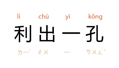 出处《管子·国蓄》:“利出于一孔者,其国无敌。”《商君书·弱民》:“利出一孔,则国多物。”