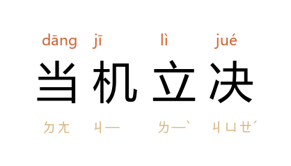 出处清 采蘅子《虫鸣漫录》卷一:“国家设官分职,秩有大小,权亦有等差:斩绞者奏请定夺,军流决于臬司,徒决于府,枷仗决于县,法至良也。所患者,不能当机立决,必待报而后施行。”