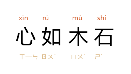 出处《五灯会元 百丈怀海禅师》:“一切诸法,莫记忆,莫缘念,放舍身心,令其自在,心如木石,无所辨别。”清 纪昀《阅微草堂笔记 滦阳消夏录四》:“君不以异类见薄,故为悦己者容,北室生心如木石,吾安敢近?”