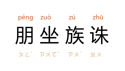 坐:坐罪。有朋友关系的人也被判罪,整个家族被杀掉。比喻株连治罪,残暴统治。