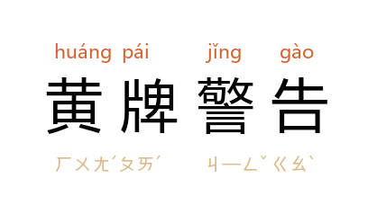 指足球比赛中裁判员对有较严重犯规行为的运动员出示黄牌以示警告,也借指对人的提醒、警告。
