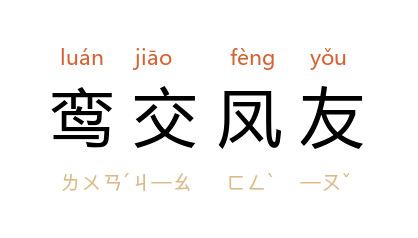 出处元 王实甫《西厢记》第四本第二折:“来时节画堂箫鼓鸣春昼,列着一对儿鸾交凤友。”