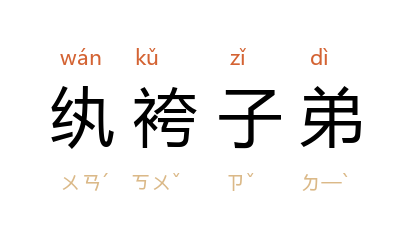 纨袴:细绢做成的裤子,泛指华丽衣着。旧称浮华的富贵人家子弟。