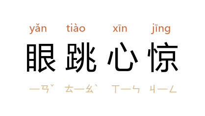 眼皮跳动,内心惊恐。形容感到不安、害怕。