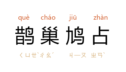 斑鸠不会做窠,常强占喜鹊的窠。本指女子出嫁,定居于夫家。后比喻强占别人的住处。