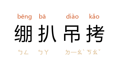 出处元 李行道《灰阑记》第二折:“你若经官发落,这绷扒吊拷要桩桩儿捱过。”元 王仲文《救孝子》第三折:“并无聪明正直的心腹,尽都是那绷扒吊拷的招状。”