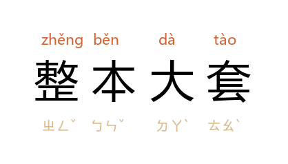 出处老舍《赵子曰》第十七:“如今叫我整本大套的去和女怪交际,你想想,端翁,我老赵受得了受不了?!”又《文博士》三:“中国的老事儿有许多是合乎科学原理的,不过是没有整本大套的以科学始,以科学终而已。”