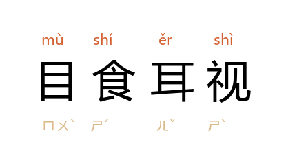 用眼睛吃,用耳朵看。比喻颠倒错乱。