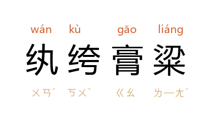 出处清·文康《儿女英雄传》第八回:“你是个纨绔膏粱,这也无怪你不知。”