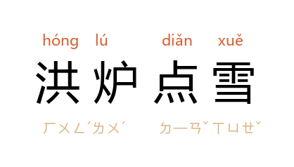 出处明 冯梦龙《醒世恒言 佛印师四调琴娘》:“他原是明悟禅师转世,根气不同,所以出儒入墨,如洪炉点雪。”