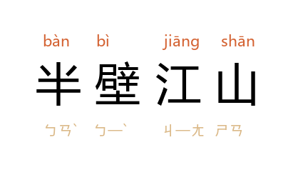 半壁:半边;江山:国土。指外敌大半入侵或内战割据所造成的国土分裂状态。