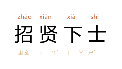 招:招收;贤:有才德的人;士:指读书人。招收贤士,接纳书生。指广泛网罗人才。