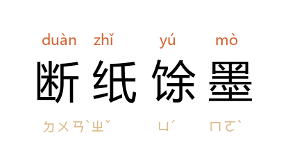 出处《宣和书·詹鸾》:“彩鸾以书《唐韵》名于时,至今断纸馀墨,人传宝之。”