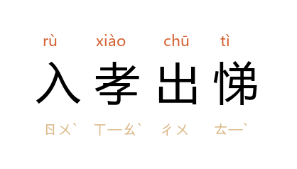 语出《论语·学而》:“子曰:‘弟子入则孝,出则悌。’”谓回家要孝顺父母,出外要敬爱兄长。