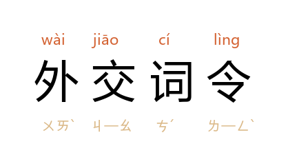 出处钱钟书《围城》:“辛楣自以为这个英文字嵌得非常妙,不愧外交词令。”