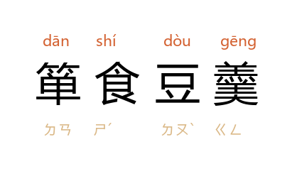 箪:盛饭的竹器;豆:古代盛食物的器皿。一箪饭食,一豆羹汤。指少量饮食。比喻小利。