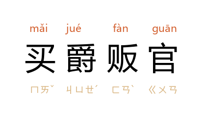 出处汉·桓宽《盐铁论·刺复》:“买爵贩官,免刑除罪,公用弥多,而为者徇私,上下无求,百姓不堪。”