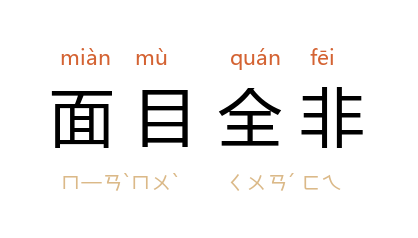 面目:样子;非:不是。样子跟从前完全不同。形容变化大得很。