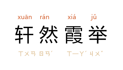 例子李白名播海内,玄宗见其神气高朗,轩然霞举,上不觉忘万乘之尊。宋·王谠《唐语林·文学》