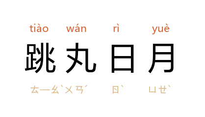 出处唐·韩愈《秋怀》诗:“忧愁费晷景,日月如跳丸。”唐·杜牧《寄浙东韩乂评事》诗:“一笑五云溪上舟,跳丸日月十经秋。”