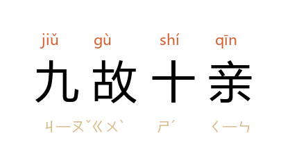 出处元·关汉卿《哭存孝》第二折:“又不曾相趁着狂朋怪友,又不曾关节做九故十亲。” 元·石德玉《秋胡戏妻》第二折:“爹爹也,全不怕九故十亲笑耻。”