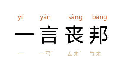 出处《论语·子路》:“一言而丧邦,有诸?”《旧唐书·孙伏伽传》:“周,隋之季,忠臣结舌,一言丧邦,谅足深诫。”
