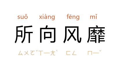 风靡:草木随风倒伏的样子。比喻畏惧强敌,闻风溃败。