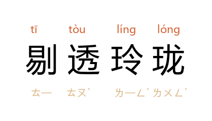 出处元·张养浩《最高歌兼喜春来·咏玉簪》曲:“诗磨的剔透玲珑,酒灌得痴呆懵懂。”元·乔吉《斗鹌鹑·歌姬》曲:“且是娘剔透玲珑不放闲,不枉了唤声妆旦。”