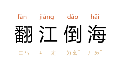 把大江大海都翻转过来;形容水势很大;现在多用来形容声势浩大或力量巨大。也用以形容混乱不堪破坏极甚的情况。