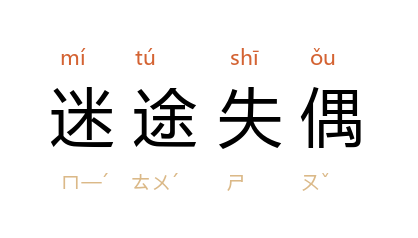 迷途:迷失道路;偶:伴侣。迷失了道路,丢失了朋友。指遭到不幸或陷于孤独。