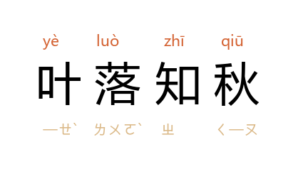 叶落知秋:看到树叶落,便知秋天到来。比喻从细微的变化可以推测事物的发展趋向。