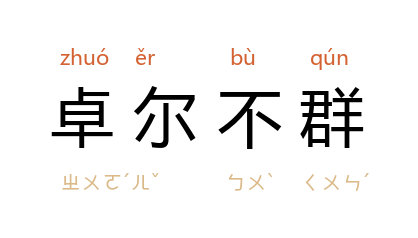 卓尔:特出的样子;不群:与众不同。指才德超出寻常,与众不同。
