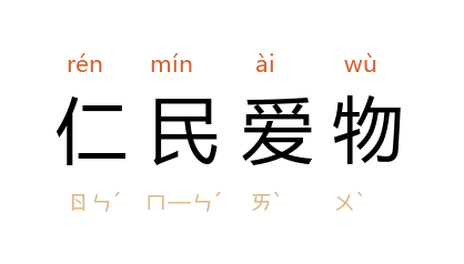 出处《孟子·尽心上》:“君子之于物也,爱人而弗仁;于民也,仁之而弗亲,亲亲而仁民,仁民而爱物。”
